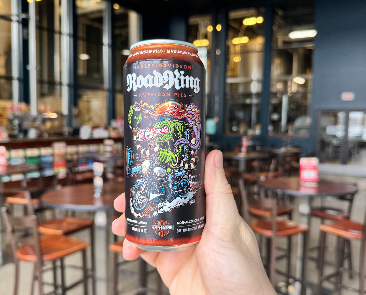 We know motorcycling and alcohol don't mix. We also know that non-alcoholic beers are booming. Unfortunately, a lot of non-alcoholic brands are boring and suffer from all being that same. We decided to do something about that and created Harley-Davidson Road King. Our first brew, a custom crafted Non-Alcoholic American Pils tastes as good as it looks!